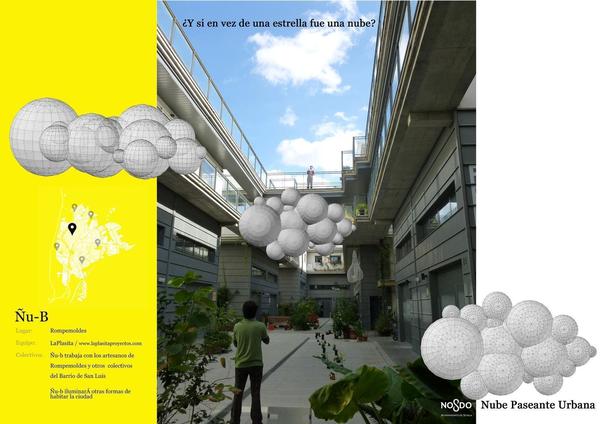 Desde las 12 de la mañana hasta la hora de comer andaremos bajo la Ñu_b haciendo un taller en el que construiremos diferentes tipos de nube con diferentes materiales:papel, a