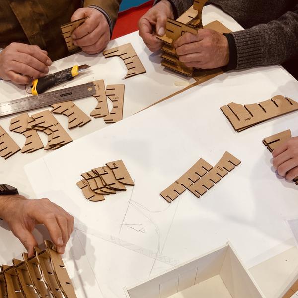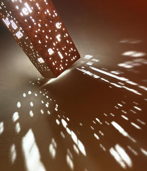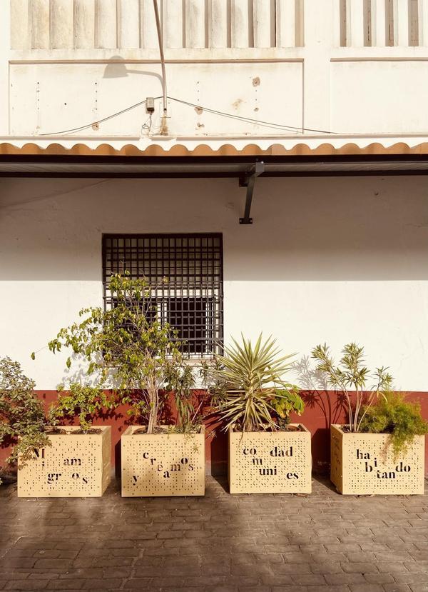 Una vez consensuada la frase que iluminará los Huertos de San Jerónimo, es el momento de prototipar algunas de las letras corpóreas que compondrán la instalación. Estas letras se colocarán sobre mástiles, a distintas alturas y en posiciones estratégicas del huerto.