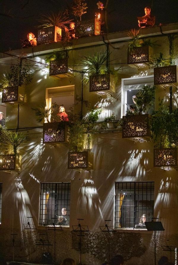 El pasado mes de marzo, la Ñu_b salió a la Plaza de la Mata a iluminar un recital poético en femenino por el mes de la mujer. Poemas de Jaime el Gamba junto a poemas de mujeres poetas en las lenguas oficiales del estado español y en algunas europeas recitadas por vecinas del barrio evidenciaron l